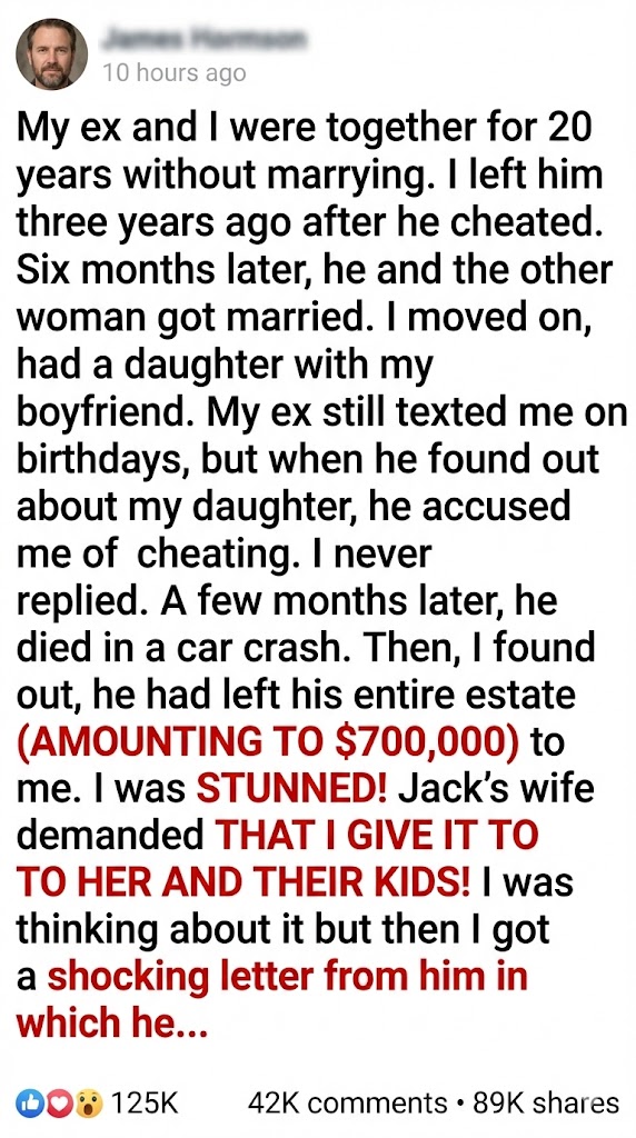 The lawyer explained. A massive stroke. Unexpected. And then, the next shock: He had left me everything. His entire estate. His apartment, which had once been our apartment. His savings. And, most bewilderingly, the plot of land we’d always dreamed of building our forever home on, complete with architect’s sketches he’d secretly commissioned. Why? After how he’d treated me, after the pain he’d inflicted, why would he do something like this? It made no sense. It was a twisted, cruel joke from beyond the grave.